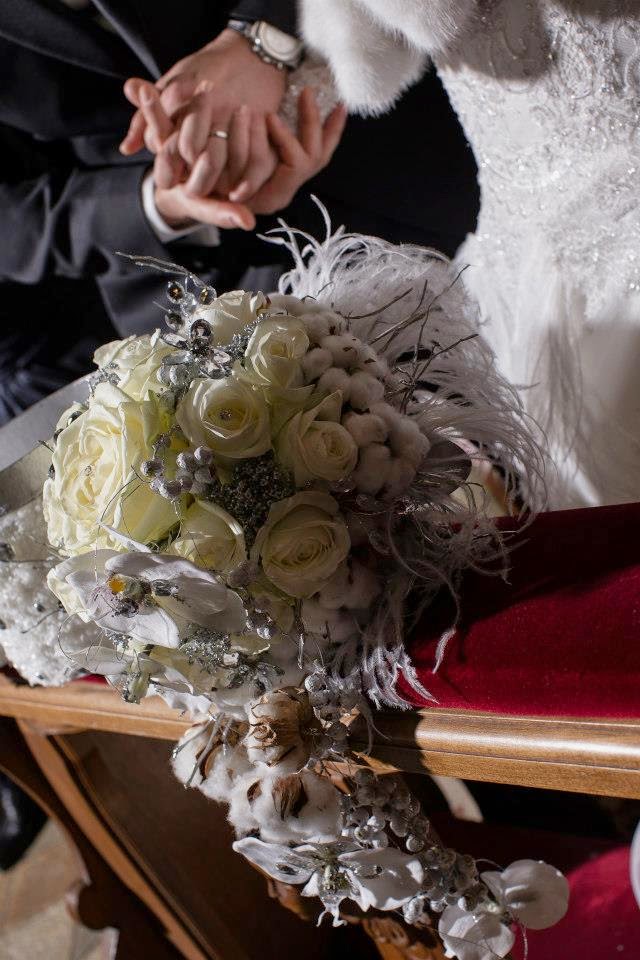 Il risultato si è concretizzato attraverso una ceraminia tradizionale e romantica, celebrata di sabato pomeriggio nel mese di Dicembre. La navata della Chiesa Collegiata dei SS Pietro e Paolo in Carmagnola, era addobbata da centinaia rose bianche,fiori di cotone e vischio oro.