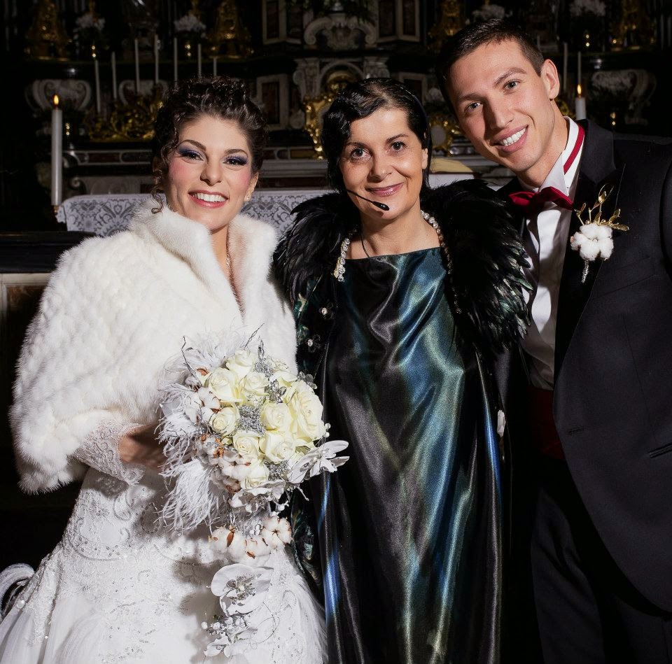 Roberto,in un elegante abito scuro, ad attenderla all'altare. Entrambi visibilmente emozianti, in sottofondo l'Ave Maria suonata dalla violinista sotto i riflessi delle candele,tutto era pronto per incorniciare la loro promessa.