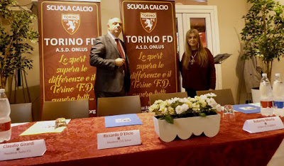 Neppure la pioggia ha fermato le numerose famiglie giunte al Cus di Grugliasco per l’inaugurazione della Scuola Calcio del Torino FD. In scena, una partita amichevole a ranghi misti con i tesserati della Prima squadra, presente anche il dirigente granata Silvano Benedetti, il quale ha promesso di organizzare al piú presto un’amichevole con gli Esordienti del Torino. Applausi a scena aperta per i campioni d’Italia che a breve difenderanno sul campo il titolo conquistato al termine della scorsa stagione, nel campionato dei diversamente abili. Serata all'insegna delle iniziative disabili portata avanti da Claudio Gilardi che da anni lavora sodo per portare avanti queste realtà. Il TORINO calcio e il TORINO FD danno a tutti la possibilità di vivere le emozioni che il calcio e lo sport sanno offrire con cuore e coraggio. Tanti complimenti anche al direttore generale Antonio Comi, insieme al difensore Emiliano Moretti. Durante l'inaugurazione tanti artisti come Ermanno Eandi con la sua emozionante poesia insieme ai cantanti Marco Carena e Vincenzo Torelli hanno simboleggiato l'evento.